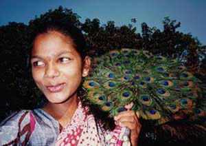 Peacock plume fan salesgirl